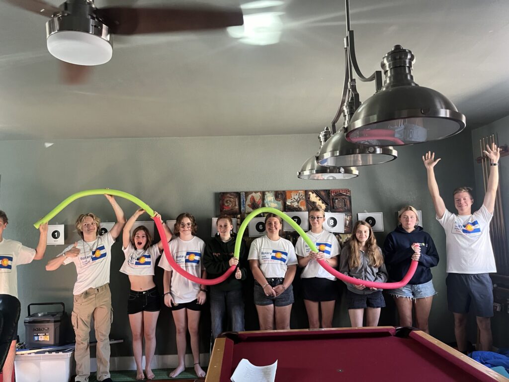 Rebound students at their retreat after their 23-24 year abroad-wearing Rotary t-shirt